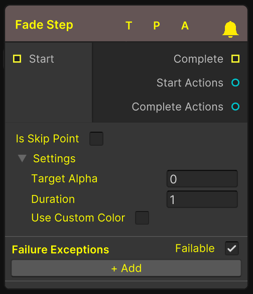 Follow these steps to set up a Fade that will progress the user in the graph when the duration has completed.