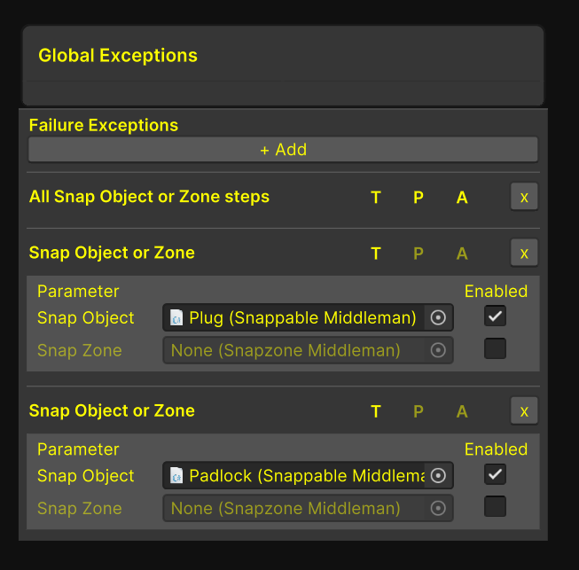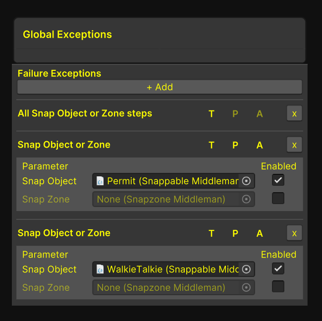 A Global Exception Node Detailing if some snap Objects should fail