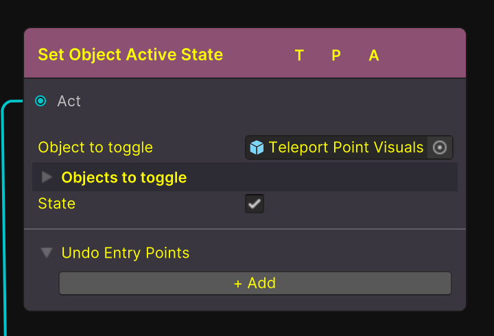 Similar to the Set Component State action, this action will set an GameObject as a whole on or off. This can be useful in many cases but some notable examples would be, Setting a teleport point active on the required step. Turning off a broken pipe once its fixed and turning on a fixed pipe at the same time, or even turning a whole teleport area off when its not needed.